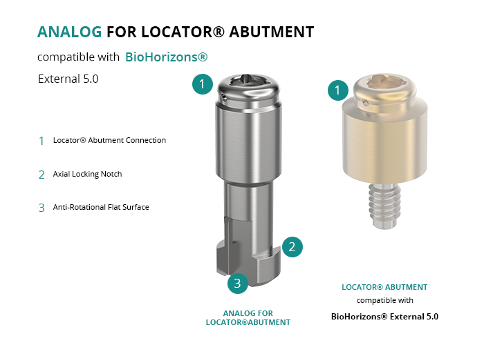 Analog for Locator® Abutment Compatible with BioHorizons® External 5.0