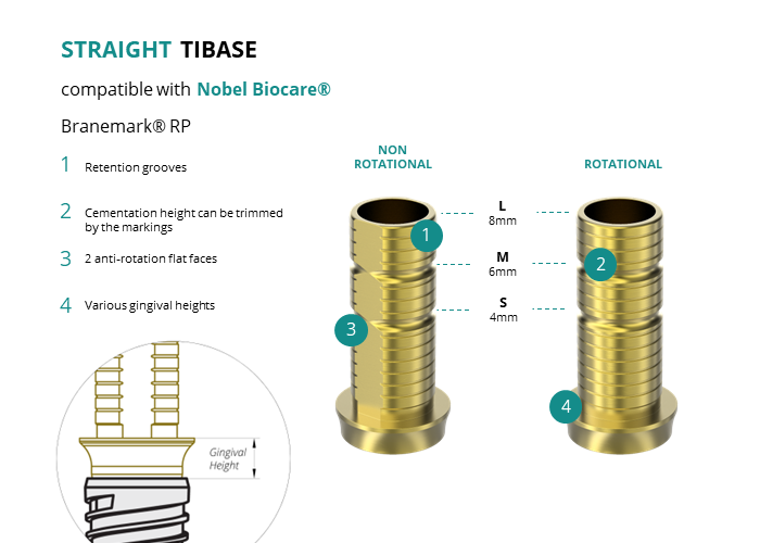 Titanium Straight Base compatible with Nobel Biocare® Branemark® RP
