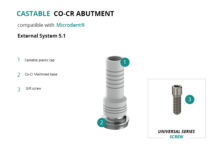 Castable Abutment with Co-Cr Base compatible with Microdent® External System 5.1