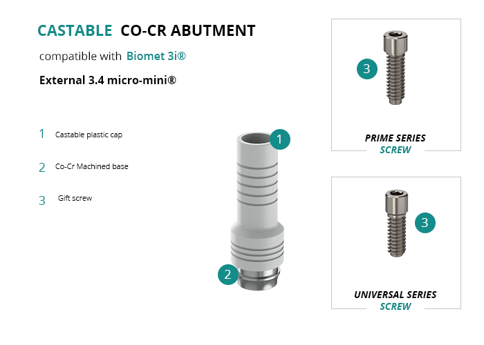 Castable Abutment with Co-Cr Base compatible with Biomet 3i® External 3.4 micro-mini®