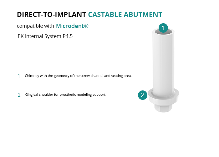 Direct-to-Implant Castable Compatible with Microdent® EK Internal System P4.5