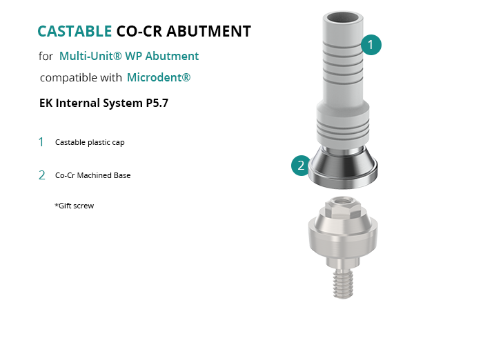 Castable Abutment with Co-Cr Base for Multi-Unit® WP Abutment compatible with Microdent® EK Internal System P5.7