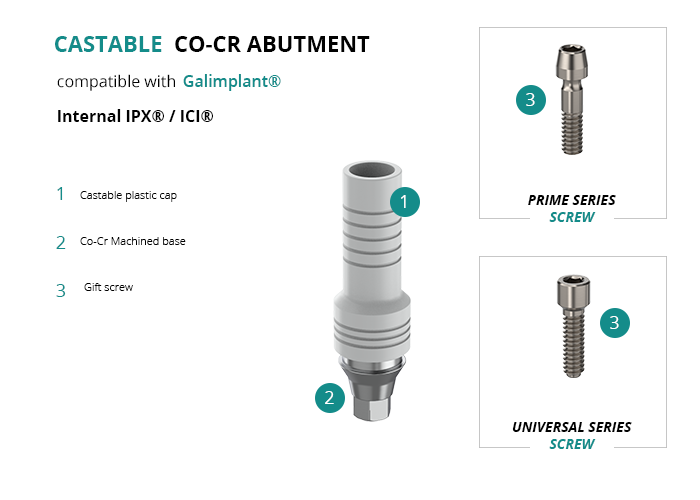 Castable Abutment with Co-Cr Base compatible with Galimplant® Internal IPX® / ICI®