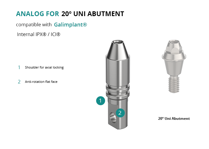 Analog for 20º Uni Abutment Compatible with Galimplant® Internal IPX® / ICI®