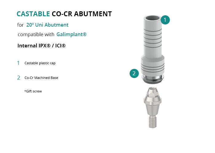 Castable Abutment with Co-Cr Base for 20º Uni Abutment compatible with Galimplant® Internal IPX® / ICI®