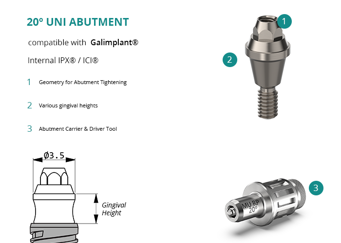 20º Uni Abutment compatible with Galimplant® Internal IPX® / ICI®