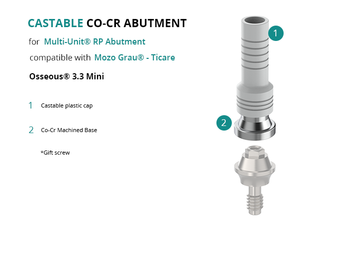 Castable Abutment with Co-Cr Base for Multi-Unit® RP Abutment compatible with Mozo Grau® - Ticare Osseous® 3.3 Mini