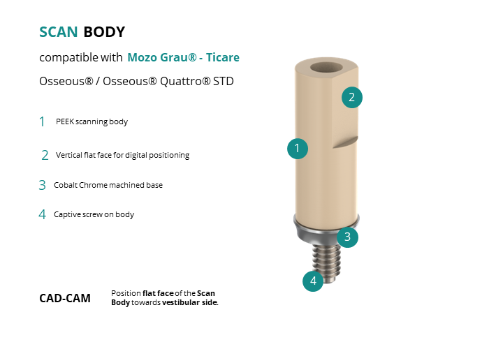 Scan Body compatible with Mozo Grau® - Ticare Osseous® / Osseous® Quattro® STD