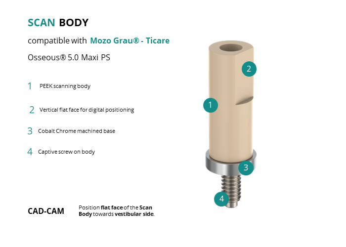 Scan Body compatible with Mozo Grau® - Ticare Osseous® 5.0 Maxi PS