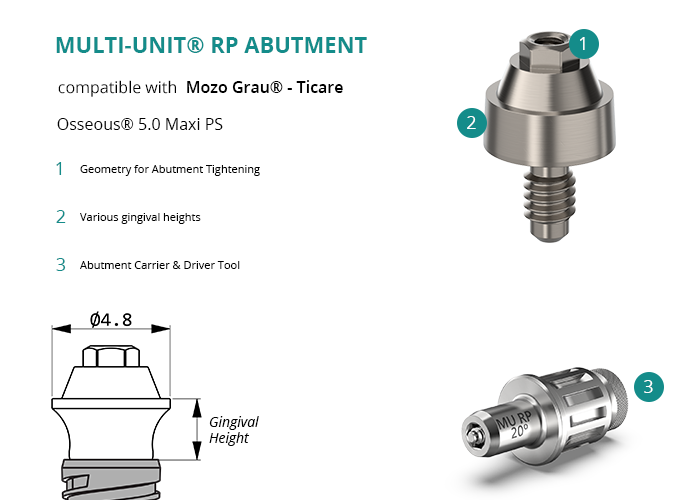 Multi-Unit® RP Abutment compatible with Mozo Grau® - Ticare Osseous® 5.0 Maxi PS