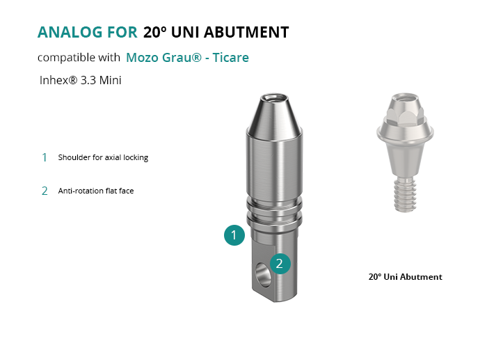 Analog for 20º Uni Abutment Compatible with Mozo Grau® - Ticare Inhex® 3.3 Mini