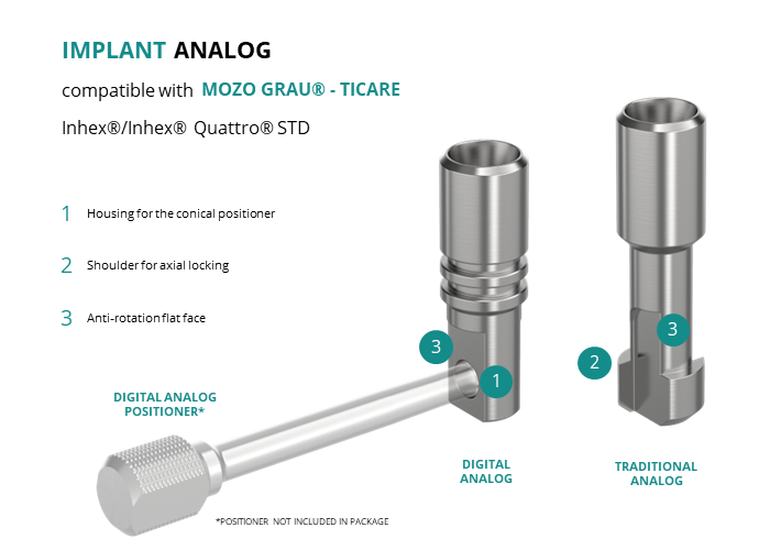 - Digital Analog: for models made of resin through 3D printing, locking is achieved using a slightly conical positioner, ensuring axial positioning.