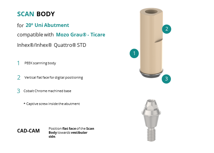 Scan Body for 20� Uni Abutment compatible with Mozo Grau® - Ticare Inhex®/Inhex® Quattro® STD