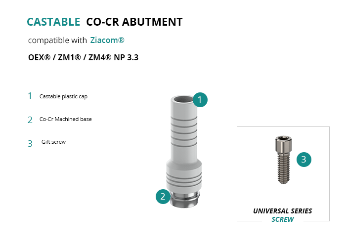 Castable Abutment with Co-Cr Base compatible with Ziacom® OEX® / ZM1® / ZM4® NP 3.3