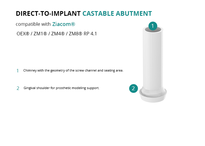 Direct-to-Implant Castable Compatible with Ziacom® OEX® / ZM1® / ZM4® / ZM8® RP 4.1
