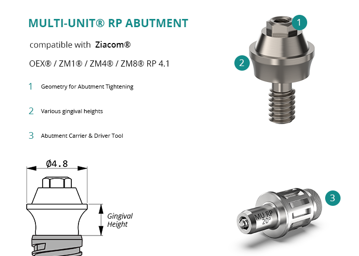 Multi-Unit® RP Abutment compatible with Ziacom® OEX® / ZM1® / ZM4® / ZM8® RP 4.1