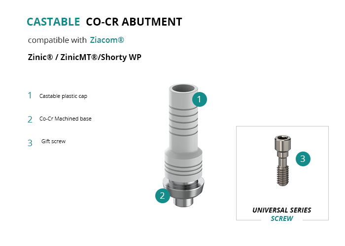 Castable Abutment with Co-Cr Base compatible with Ziacom® Zinic® / ZinicMT®/Shorty WP