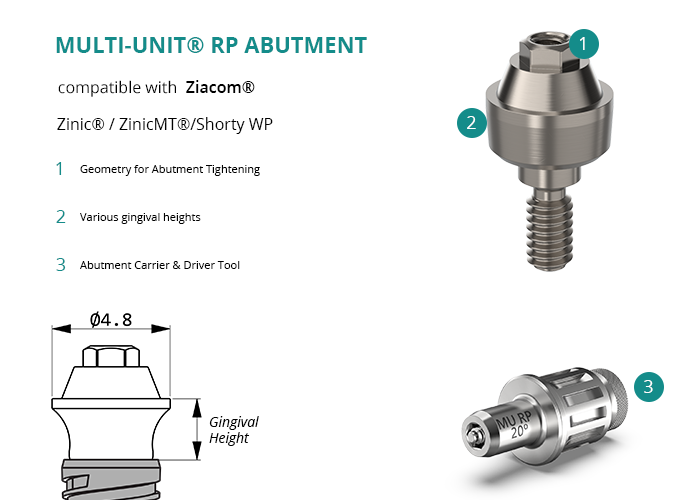 Multi-Unit® RP Abutment compatible with Ziacom® Zinic® / ZinicMT®/Shorty WP