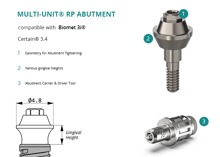 Multi-Unit® RP Abutment compatible with Biomet 3i® Certain® 3.4