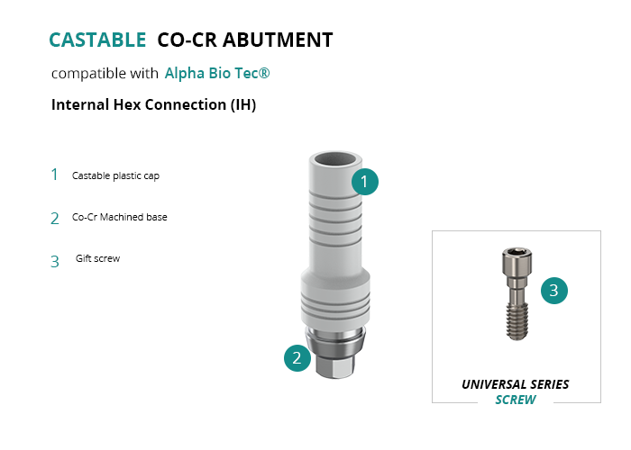 Castable Abutment with Co-Cr Base compatible with Alpha Bio Tec® Internal Hex Connection (IH)