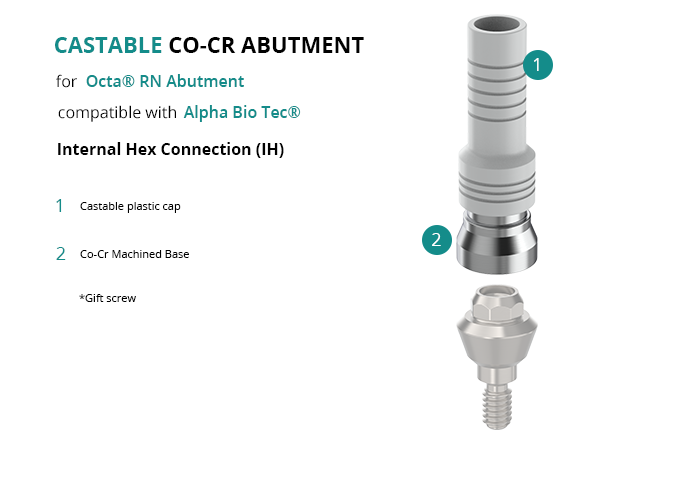 Castable Abutment with Co-Cr Base for Octa® RN Abutment compatible with Alpha Bio Tec® Internal Hex Connection (IH)