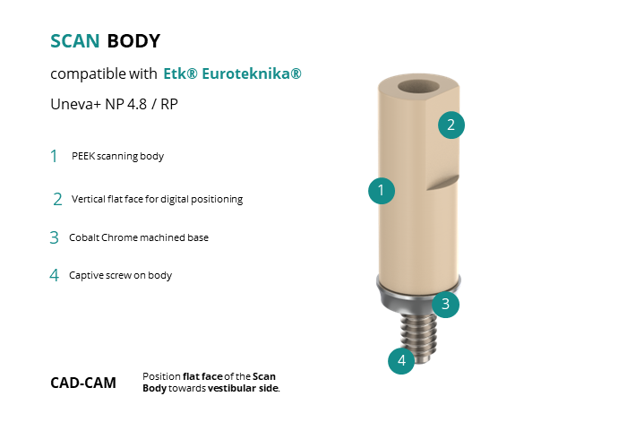 Scan Body compatible with Etk® Euroteknika® Uneva+ NP 4.8 / RP