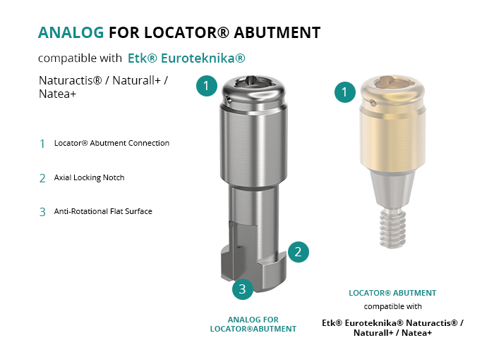 Analog for Locator® Abutment Compatible with Etk® Euroteknika® Naturactis® / Naturall+ / Natea+