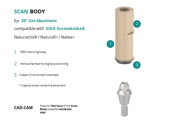 Scan Body for 20� Uni Abutment compatible with Etk® Euroteknika® Naturactis® / Naturall+ / Natea+
