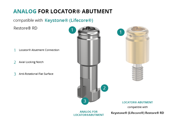 Analog for Locator® Abutment Compatible with Keystone® (Lifecore®) Restore® RD