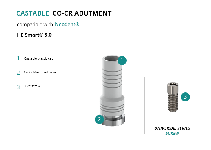 Castable Abutment with Co-Cr Base compatible with Neodent® HE Smart® 5.0