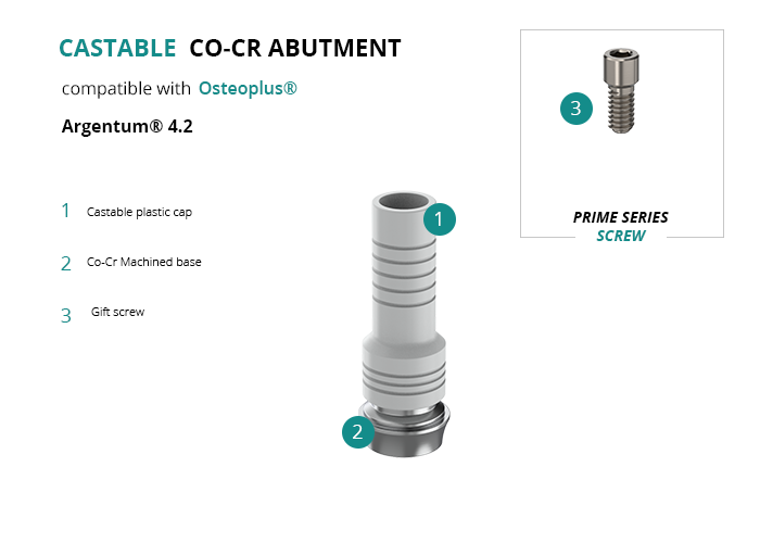 Castable Abutment with Co-Cr Base compatible with Osteoplus® Argentum® 4.2