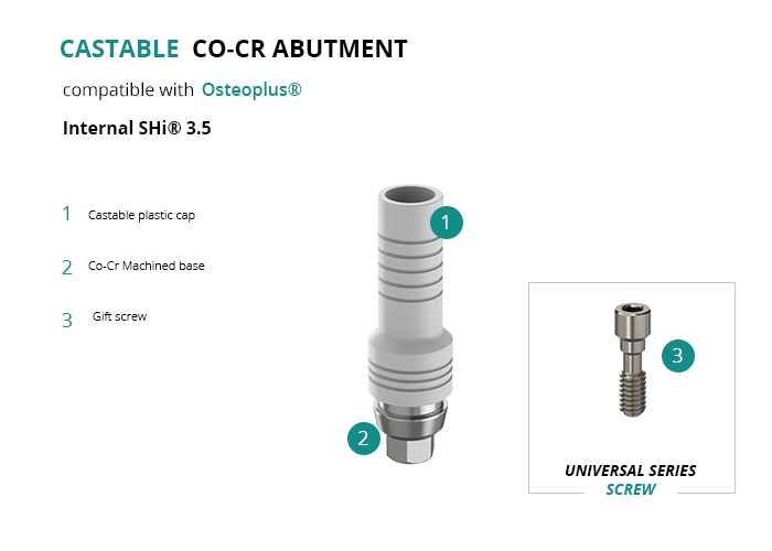 Castable Abutment with Co-Cr Base compatible with Osteoplus® Internal SHi® 3.5