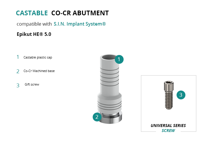 Castable Abutment with Co-Cr Base compatible with S.I.N. Implant System® Epikut HE® 5.0