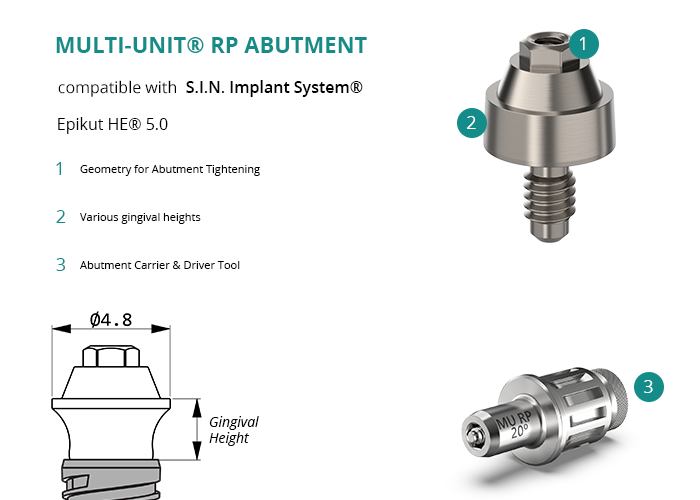 Multi-Unit® RP Abutment compatible with S.I.N. Implant System® Epikut HE® 5.0
