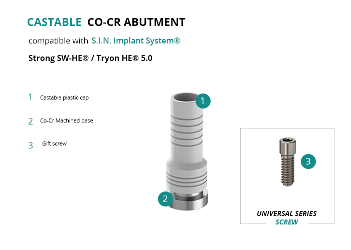 Castable Abutment with Co-Cr Base compatible with S.I.N. Implant System® Strong SW-HE® / Tryon HE® 5.0