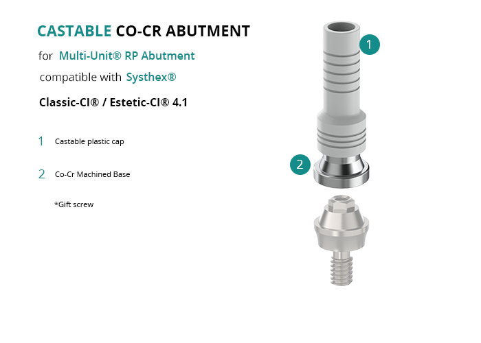 Castable Abutment with Co-Cr Base for Multi-Unit® RP Abutment compatible with Systhex® Classic-CI® / Estetic-CI® 4.1