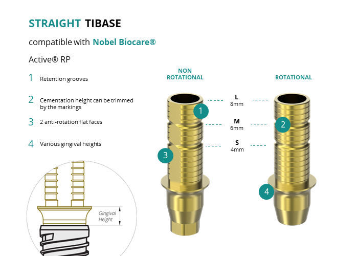 Titanium Straight Base compatible with Nobel Biocare® Active® RP