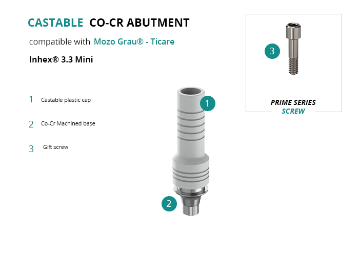 Castable Abutment with Co-Cr Base compatible with Mozo Grau® - Ticare Inhex® 3.3 Mini