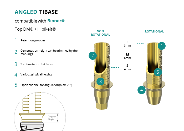 Angled Titanium Base compatible with Bioner® Top DM® / Hibikelt®
