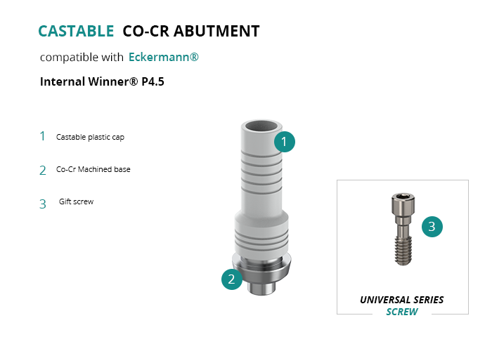 Castable Abutment with Co-Cr Base compatible with Eckermann® Internal Winner® P4.5