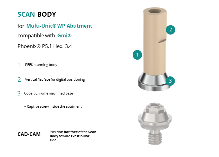 Scan Body for Multi-Unit® WP Abutment compatible with Gmi® Phoenix® P5.1 Hex. 3.4