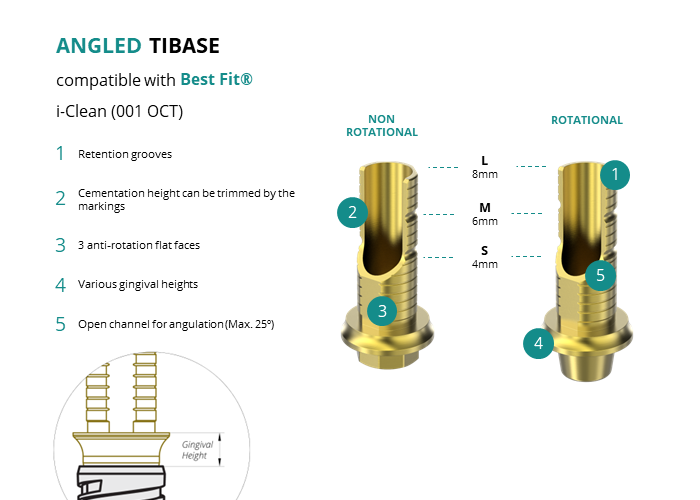 Angled Titanium Base compatible with Best Fit® i-Clean (001 OCT)