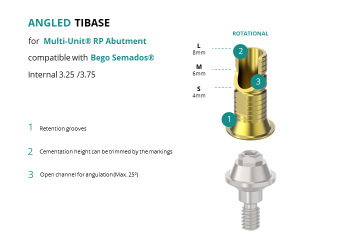 Angled Titanium Base for Multi-Unit® RP Abutment compatible with Bego Semados® Internal 3.25 /3.75