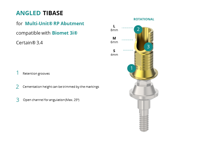 Angled Titanium Base for Multi-Unit® RP Abutment compatible with Biomet 3i® Certain® 3.4