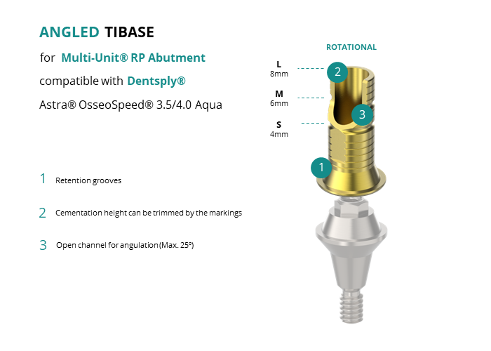 Angled Titanium Base for Multi-Unit® RP Abutment compatible with Dentsply® Astra® OsseoSpeed® 3.5/4.0 Aqua