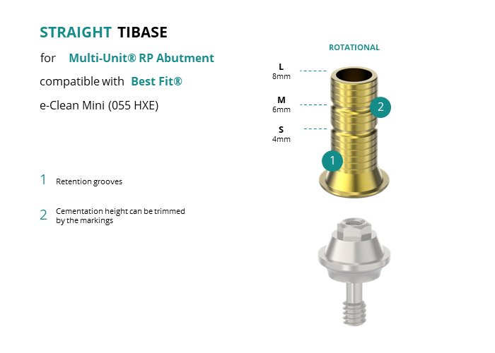 Titanium Straight Base for Multi-Unit® RP Abutment compatible with Best Fit® e-Clean Mini (055 HXE)