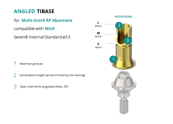 Angled Titanium Base for Multi-Unit® RP Abutment compatible with Mis® Seven® Internal Standard Ø3.5