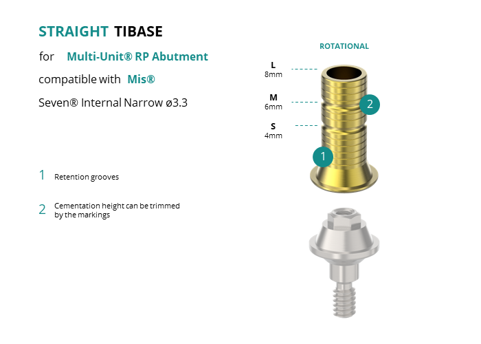 Titanium Straight Base for Multi-Unit® RP Abutment compatible with Mis® Seven® Internal Narrow Ø3.3