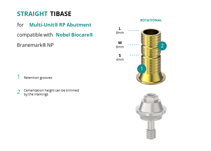 Titanium Straight Base for Multi-Unit® RP Abutment compatible with Nobel Biocare® Branemark® NP
