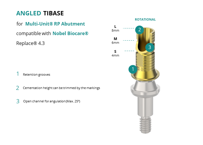 Angled Titanium Base for Multi-Unit® RP Abutment compatible with Nobel Biocare® Replace® 4.3